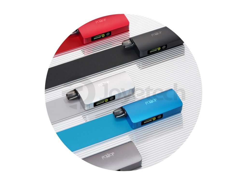 Klíčové informace budete mít vždy na očích, ať už máte v ruce pouze samostatný pod, nebo chcete jen zkontrolovat zbývající kapacitu powerbanky. Displej podu je zjednodušený a zobrazuje uživateli pouze klíčové informace o odporu a procentech baterie. Oproti tomu displej na powerbance je větší, s modernější grafikou a umožňuje přepínat pomocí dotykového tlačítka mezi několika obrazovkami a provádět změny v nastavení.