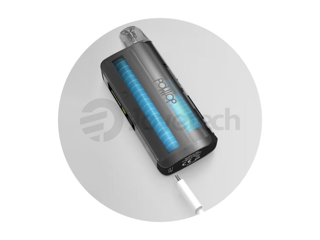 Klíčové informace budete mít vždy na očích, ať už máte v ruce pouze samostatný pod, nebo chcete jen zkontrolovat zbývající kapacitu powerbanky. Displej podu je zjednodušený a zobrazuje uživateli pouze klíčové informace o odporu a procentech baterie. Oproti tomu displej na powerbance je větší, s modernější grafikou a umožňuje přepínat pomocí dotykového tlačítka mezi několika obrazovkami a provádět změny v nastavení.