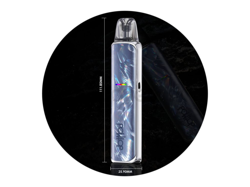 Rozměry tohoto podu jsou pouze 112 x 26 mm, což z něj činí velmi kompaktní zařízení, ze kterého se velmi pohodlně vapuje. I v malé dlani se doslova ztratí a snadno jej schováte i do kapsy.