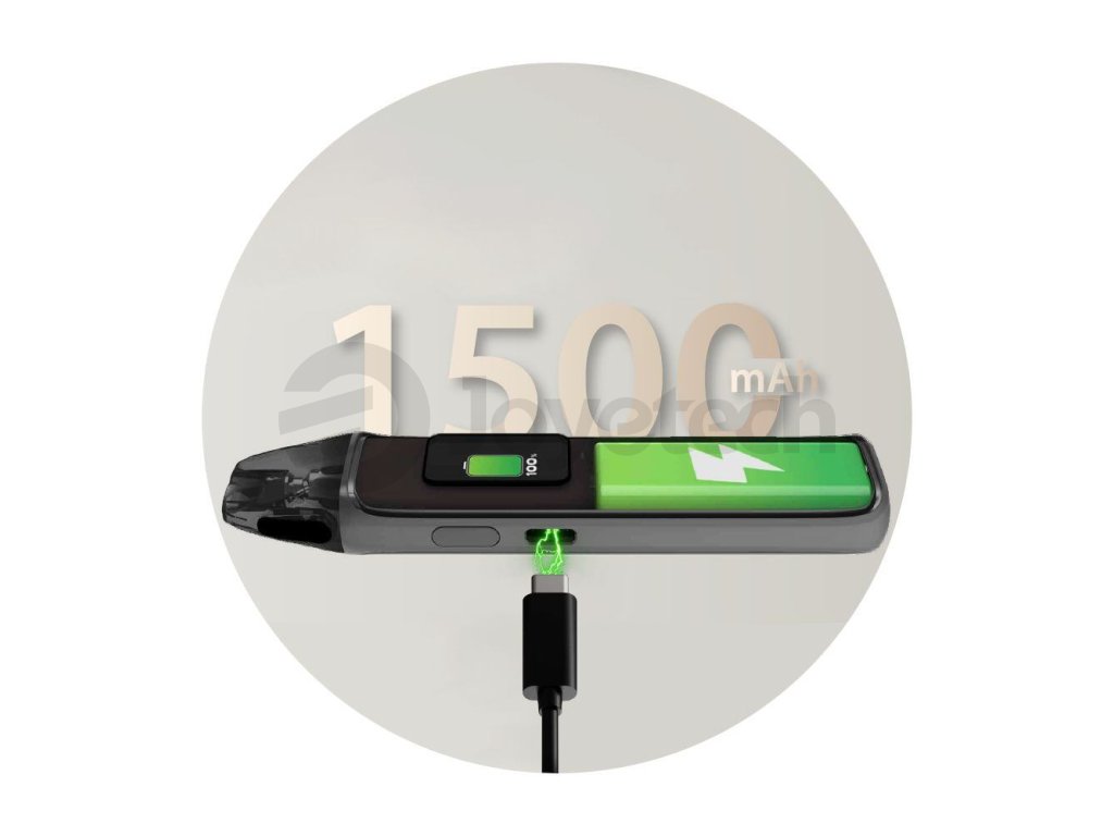 Vysokému výkonu e-cigarety zdatně sekunduje integrovaná 1500mAh baterie. Tato velkorysá kapacita by měla běžnému kuřákovi zaručit celodenní používání bez nutnosti řešit dobíjení. Pokud k tomu přesto dojde, rychlé 2A nabíjení přes rozhraní USB-C vám umožní e-cigaretu bleskové dobít do plné kapacity a pohotově se tak vrátit k vapování.