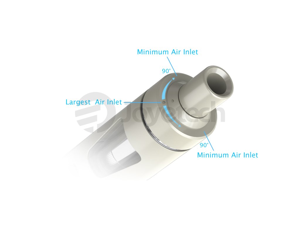 Vrchní odnímatelná část je opatřena dětskou pojistkou (ochrana před nechtěnému otevření). Atomizér (žhavící hlava) již není ve spodní části, jako u většiny ostatních clearomizerů, ale nachází se přímo pod náustkem, kde je i regulace přívodu vzduchu (Airflow). Jako atomizéry (žhavící hlavy) jsou podporovány typy s označením Joyetech BF, které se již plně osvědčili v clearomizerech Joyetech CUBIS a jiných modelů firmy Joyetech. Samotná sada elektronické cigarety již obsahuje jednu žhavící hlavu s nerezovou žhavící spirálkou a odporem 0,6 Ω. Nabízí se tak podpora žhavících hlav s odporem 0,5 Ω, 1,0 Ω a 1,5 Ω, případně jinými řady BF.