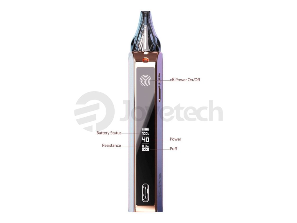 Mějte neustálý přehled o tom, co se s vaším zařízením právě děje a užívejte si výhody minimalistického uživatelského rozhraní se všemi potřebnými informacemi pěkně u sebe. Na displeji uvidíte stav baterie, aktuálně nastavený výkon, odpor připojené cartridge a celkový počet potahů. Vše je přehledné, stručné a intuitivní, model si tak velice snadno zamilujete.