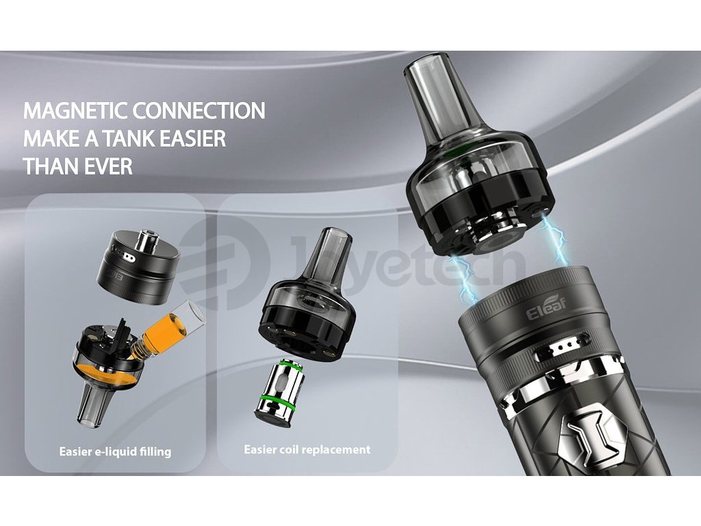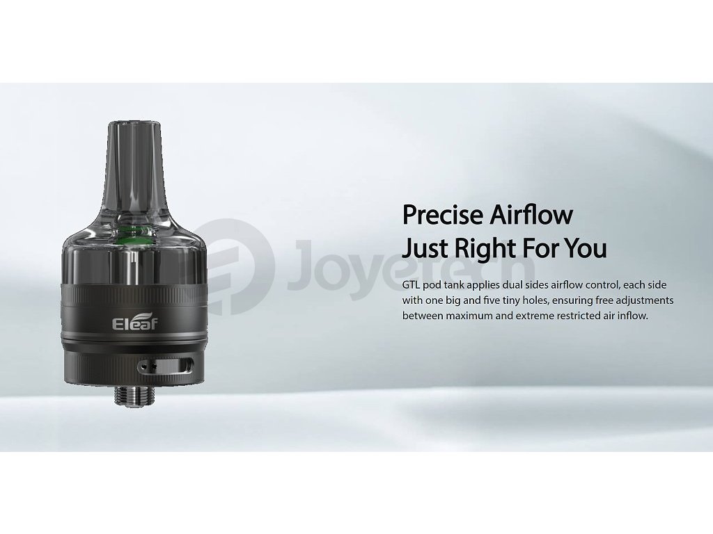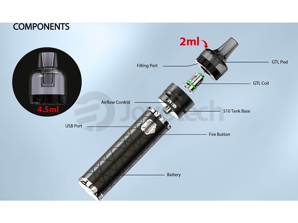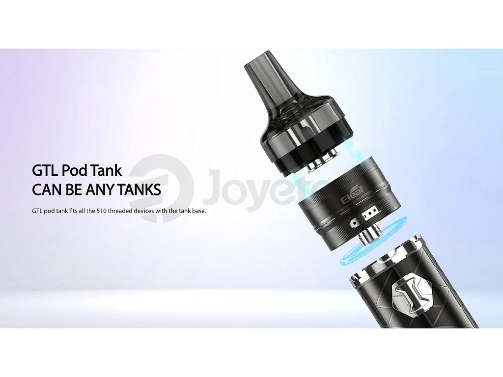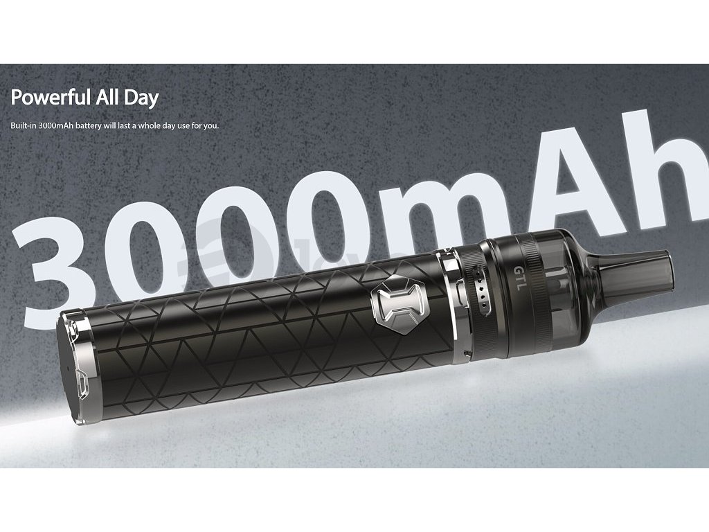 Výkonná elektronická cigareta s kapacitou baterie 3000mAh, výkonem až 80W a jednoduchým ovládáním, v setu s inovativním Pod Tankem iSmoka-Eleaf GTL s kapacitou 4,5ml. Jednoduchá výměna žhavících hlav typu Eleaf GTL, vyměnitelná Cartridge se základnou vybavenou závitem typu 510, jednoduché plnění, micro-USB nabíjení, indikace stavu nabití. Regulace přívodu vzduchu. Možnost použití pro styl MTL i DL v závislosti na odporu žhavící hlavy. 2x žhavící hlava Eleaf GTL v Setu.