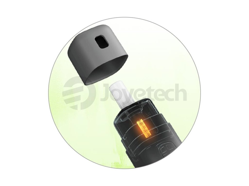 Ve vrchní části je na tělo baterie nasazena cartridge, která je vybavena integrovaným žhavícím tělískem s mesh pletivem a odporem 0,8 ohm. Toto tělísko se postará o rychlý a efektivní náběh žhavení a díky velké odpařovací ploše mesh pletiva dodá také perfektní, plnou a výraznou chuť e-liquidu.