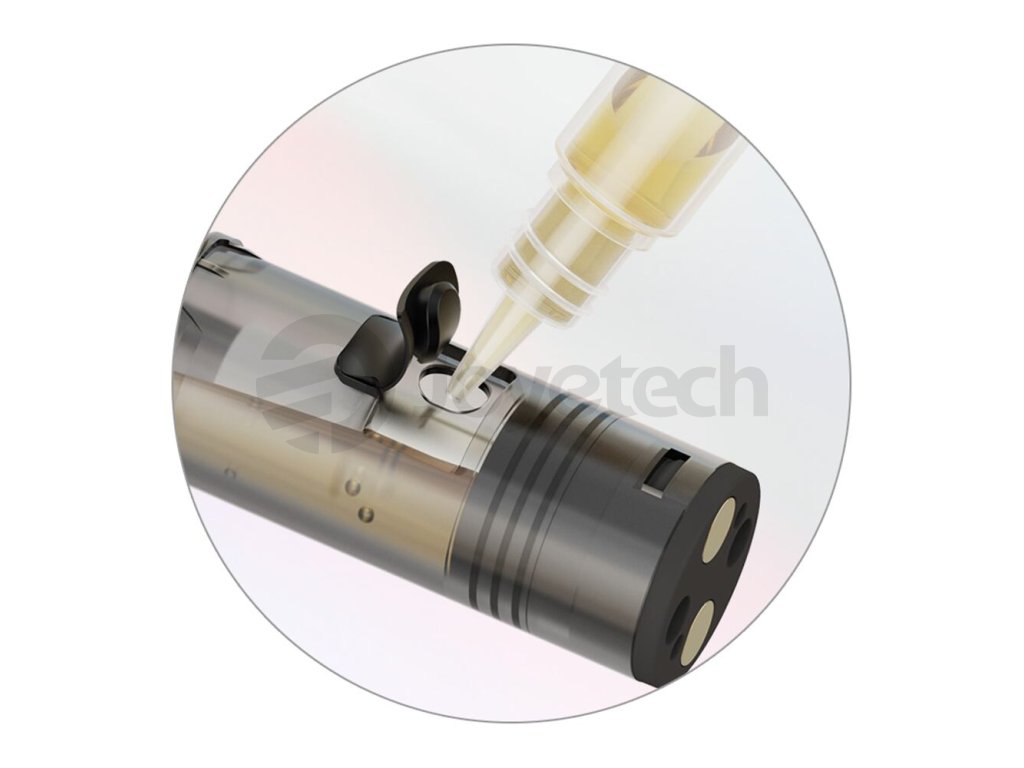 Cartridge nabídne jednoduché boční plnění se silikonovou záslepkou. Pokud se vám stane, že dojde e-liquid, jednoduše záslepku odklopíte a během pár vteřin máte opětovně naplněno. Proces plnění je účinný, rychlý, praktický a čistý.