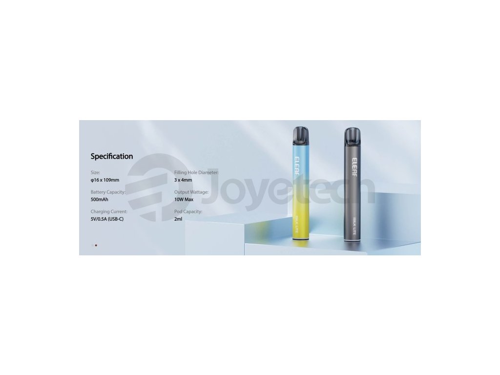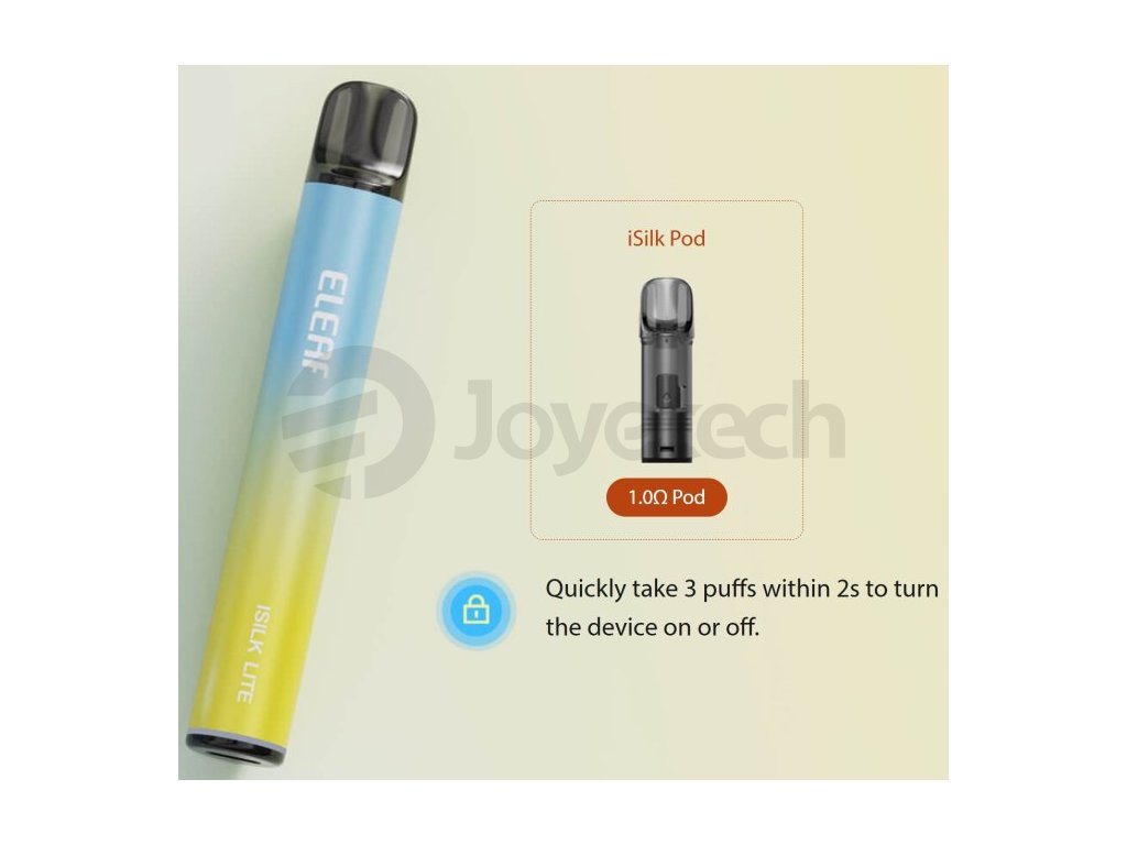 Eleaf iSILK Lite vyniká stylovým designem ve tvaru pera a nabízí jednoduché používání s 2ml plnitelnou cartridgí (0,8ohm a 1,0ohm). Zařízení je vybaveno vestavěnou dobíjecí baterií o kapacitě 500mAh, která Vám poskytne dostatek energie pro celý den. O stavu baterie Vás přehledně informuje dvoubarevný indikátor, díky kterému budete mít vždy jistotu, že je zařízení připravené k použití. Pro rychlou a plynulou aktivaci postačí třikrát potáhnout během dvou sekund – žádná složitá tlačítka, jen čistý požitek z vapování. iSilk Lite je ideální volbou pro ty, kteří hledají hladký a bohatý zážitek z vapování v elegantním a praktickém provedení. Zařízení ISILK je kompatibilní s cartridgemi ELF BAR ELFA & TAPPO.