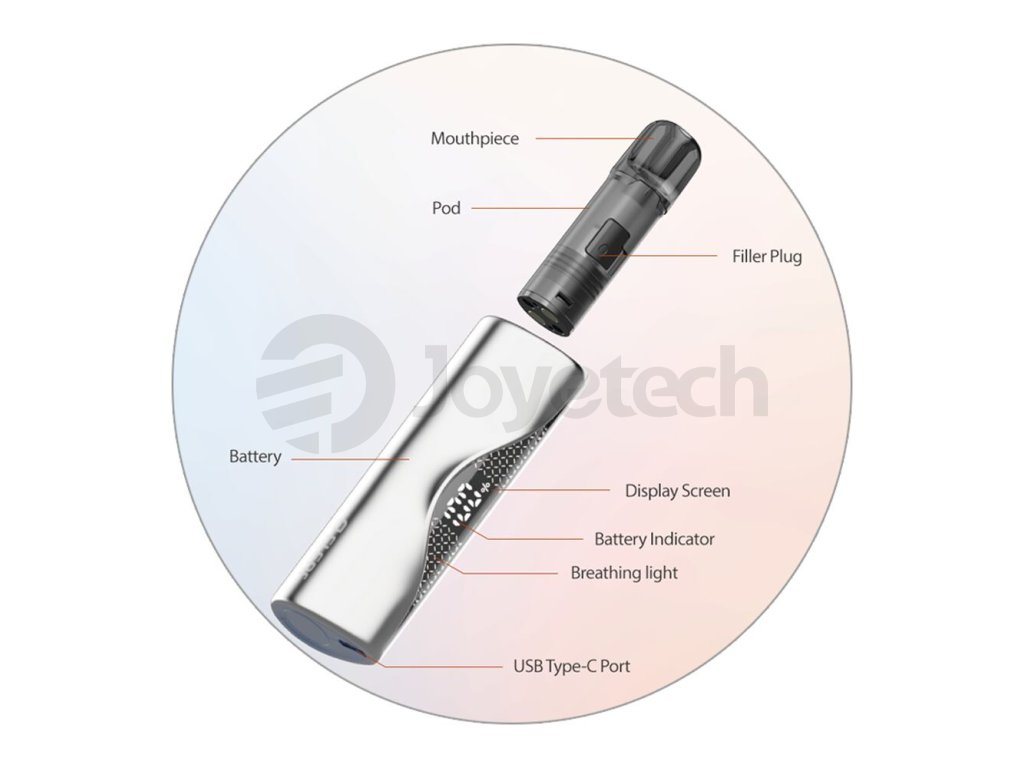 V těle e-cigarety se nachází integrovaná baterie s kapacitou 850mAh pro dlouhé hodiny nerušeného vapování bez potřeby častého dobíjení. S touto kapacitou hravě zvládnete také intenzivnější vaping. Pro účely nabíjení je zařízení vybaveno portem USB-C s podporou nabíjení proudem až 1A.