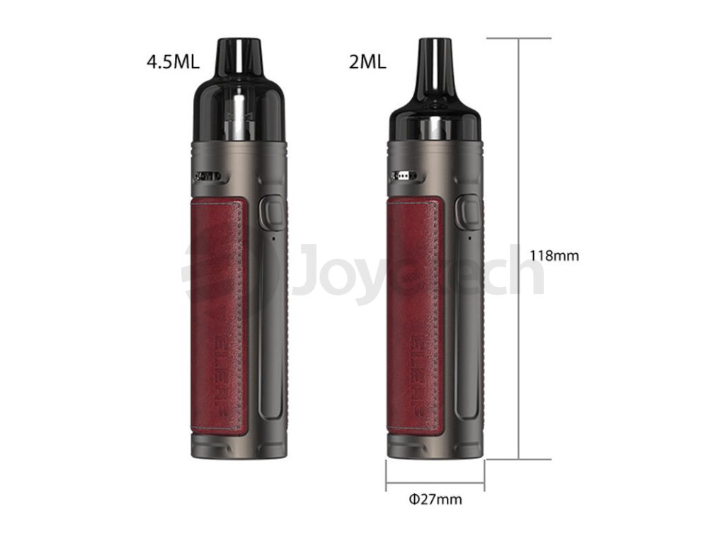 Eleaf iSolo-R Pod Kit se perfektně drží v ruce díky elegantní konstrukci podobné tradičním trubkovým e-cigaretám. Průměr činí jen 27 mm, délka je potom 118 mm. Zadní část je pokryta koženým potahem pro pohodlné držení v ruce. K dostání je hned ve čtyřech barvách, z nichž si zaručeně vybere každý.
