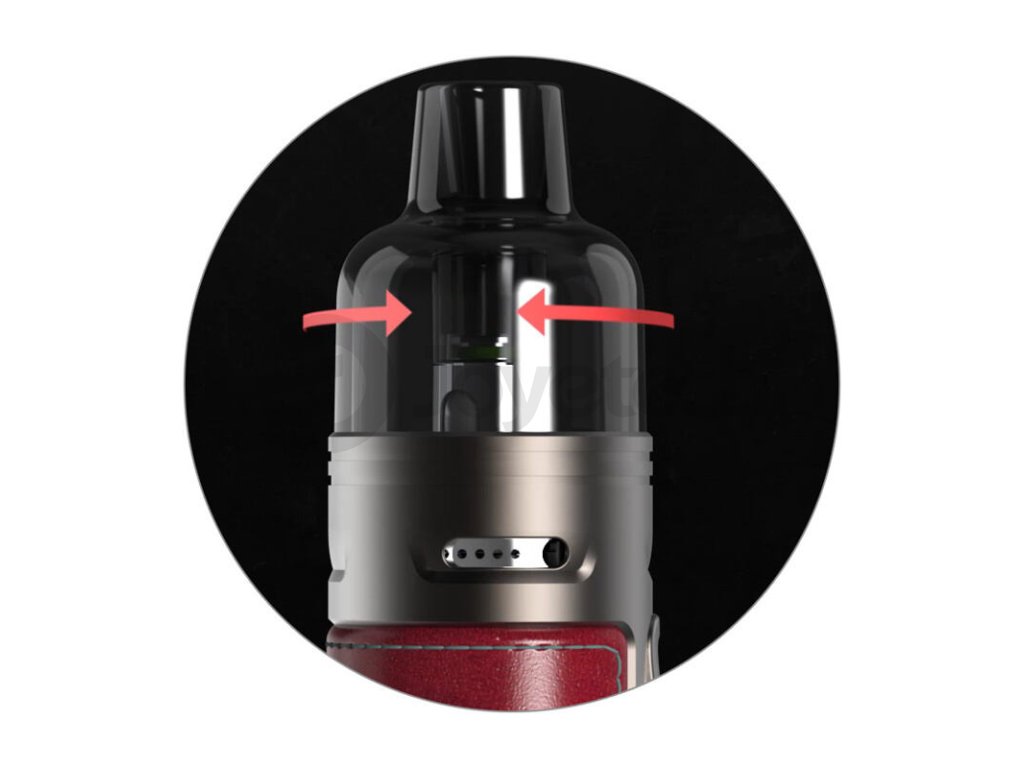 Ve vrchní části se nachází cartridge Eleaf GTL s objemem 4,5 ml. Tato cartridge nabídne praktické spodní plnění, ale také ergonomicky tvarovaný náustek pro co nejlepší zážitek z potahování. Zařízení je kompatibilní s vyměnitelnými cartridgemi Eleaf GTL, samostatně si pak můžete pořídit také cartridge Eleaf GTL s objemem 2 ml a úzkým náustkem, která se výborně hodí pro MTL.