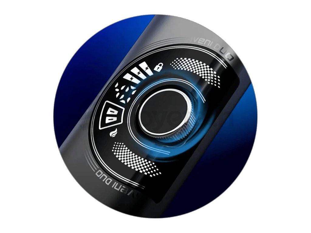 Celkové ovládání modelu iVeni Duo probíhá prostřednictvím jediného otočného tlačítka/kolečka. Různými kombinacemi stisků tak můžete e-cigaretu zapínat a vypínat, uzamykat tlačítko nebo regulovat výkon. Po vyvolání regulace výkonu pak stačí tlačítkem pootočit a výkon si upravit v povoleném rozsahu. Ovládání je snadné, rychlé a intuitivní.