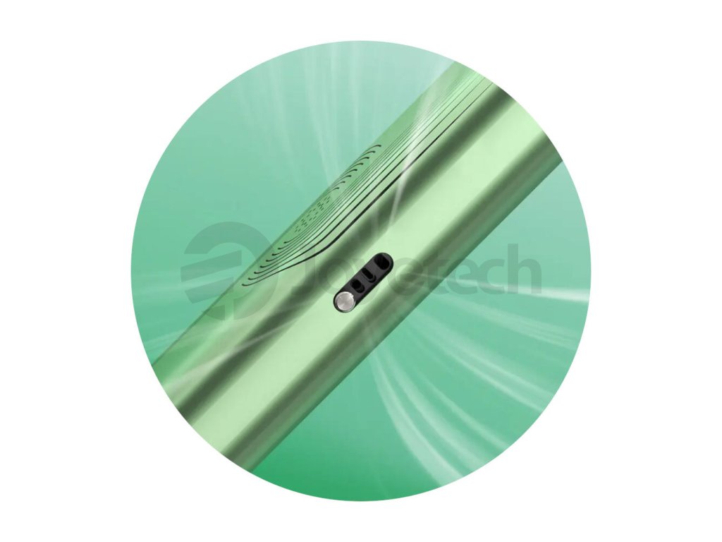Jinak precizně uhlazený design oživuje na přední straně přítomnost LED indikátoru, který přímo při potahu hraje všemi barvami a zároveň také uživatele informuje o stavu baterie. Podle jeho zelené, modré nebo červené barvy snadno poznáte aktuální úroveň nabití e-cigarety. Během vapování budete mít tedy vždy přehled o tom, zdali jste ještě v pohodě a kdy už je potřeba vyhledat nabíječku.