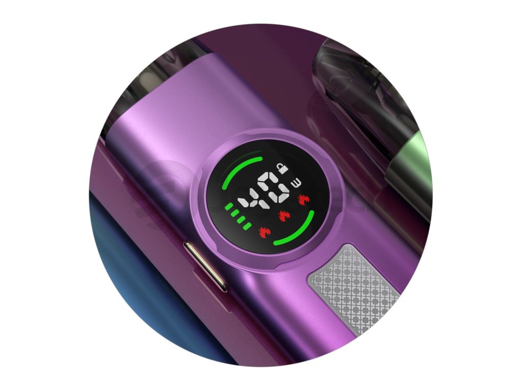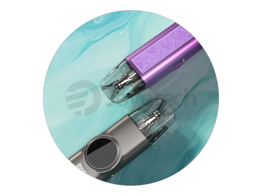 Eleaf iVeni Pod Kit zaujme harmonickým propojením elegantního designu a skvělých vymakaných funkcí. Metalický povrch dokresluje nádherný vzor na zadním panelu a přední část zdobí kulatý celobarevný displej pro snadné nastavení všech funkcí. Model nabídne integrovanou baterii s úžasnou kapacitou 1100mAh a podporou rychlého 2A nabíjení prostřednictvím portu USB-C. Na displeji budete mít neustálý přehled o nastaveném výkonu, odporu cartridge a úrovni baterie. S ergonomickým bočním ovládacím tlačítkem a pohodlným bočním doplňováním si užijete uživatelsky přívětivé ovládání a provoz, vše potom umocní boční manuální airflow regulace pro nastavení co nejoptimálnější tuhosti potahu. Díky výkonu s maximální hodnotou až 40W se iVeni postará o uspokojující a plnohodnotný požitek z každodenního vapování.