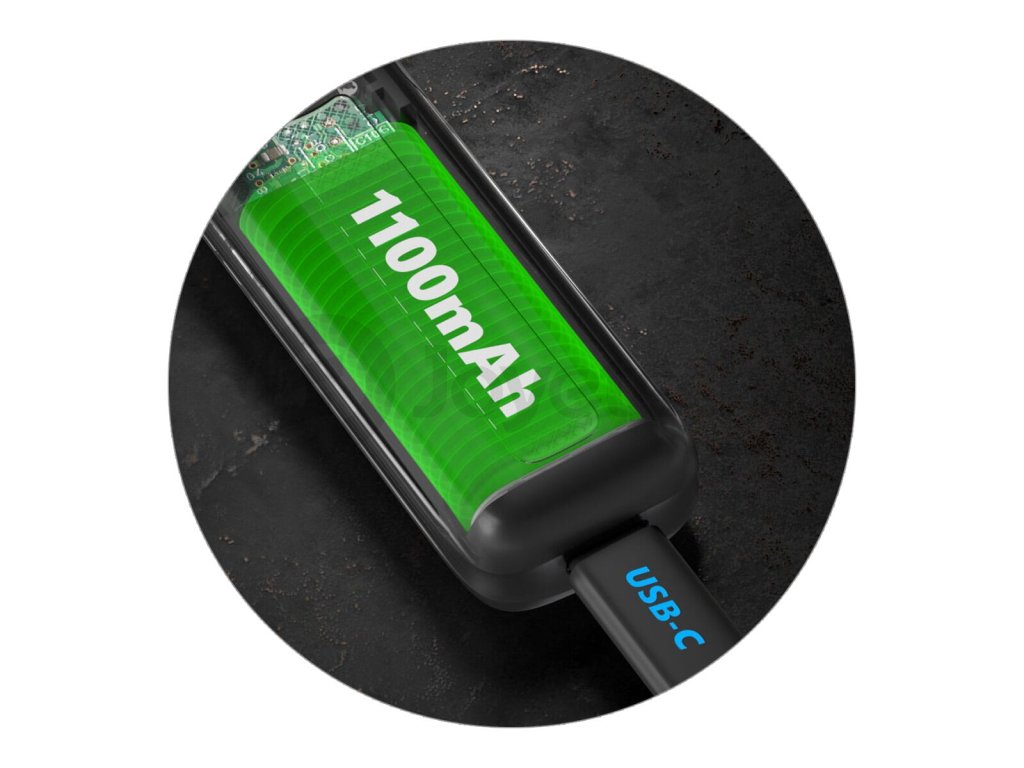 Jádro e-cigarety Eleaf iVeni Pod je poháněno integrovanou baterií se solidní kapacitou 1100mAh pro co nejlepší výsledky při vapování a pro skvělou výdrž na jedno nabití. Zajímavou vlastností zařízení je potom podpora moderního rychlého dobíjení standardem USB-C s proudem až 2A, do plné kapacity tak baterii dobijete bombasticky rychle.