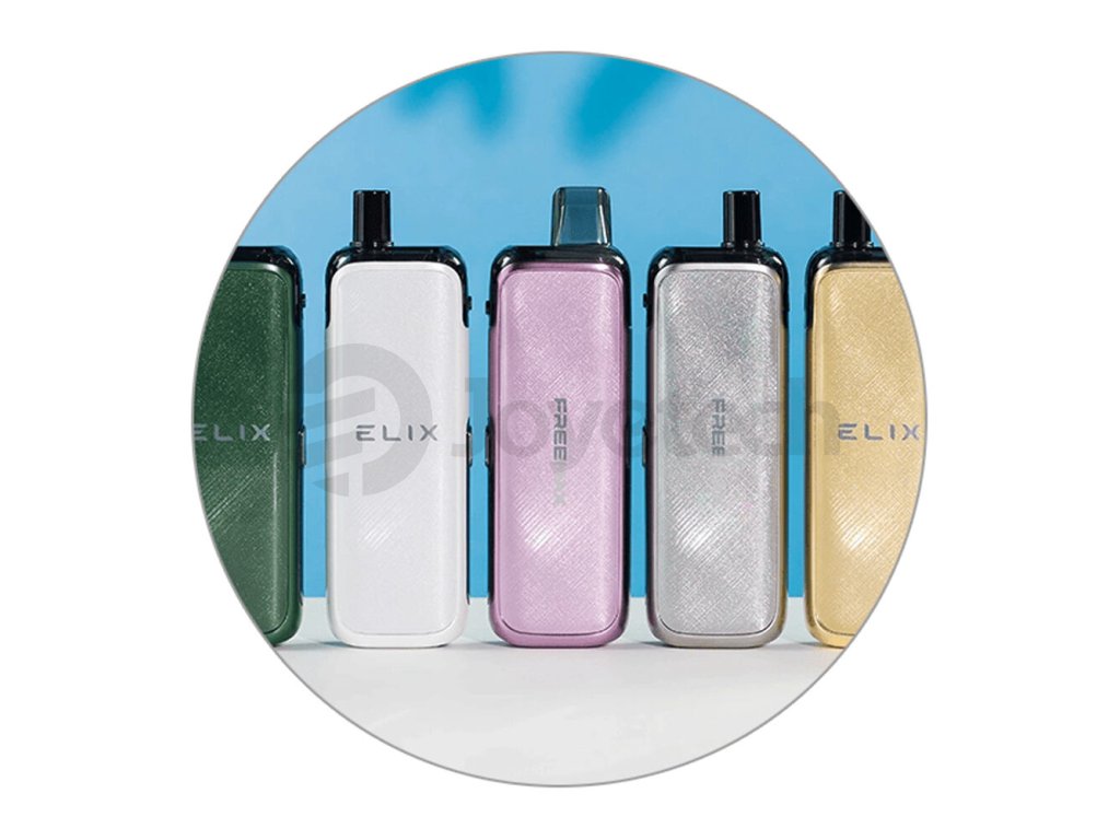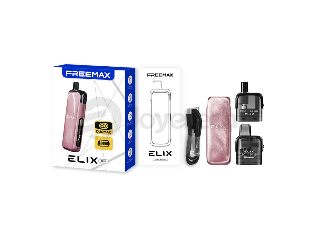 Luxusní Freemax Elix je prémiovým pod systémem s průlomovou technologií Duomax a krásně zpracovanou konstrukcí pyšnící se obrovskou kapacitou baterie. Převratná Duomax technologie se postará o trojnásobné množství chuti a trojnásobnou životnost cartridge proti konkurenčním pod systémům. Díky obrovskému objemu 5 ml a leakproof konstrukci s horním airflow systémem navíc usnadní každodenní používání i proces plnění. Integrovanou baterii s kapacitou 2000 mAh si budete moci užívat po skutečně dlouhou dobu a v případě nutnosti vás jistě potěší rychlé USB-C nabíjení s proudem až 2A. Mezi další výhody patří nastavitelný výstupní výkon až 30W, čitelný OLED displej a kvalitně zpracovaná konstrukce ze zinkové slitiny. Elix je navržen s maximálním citem pro detail, výkon a trvalé dlouhodobé užívání.