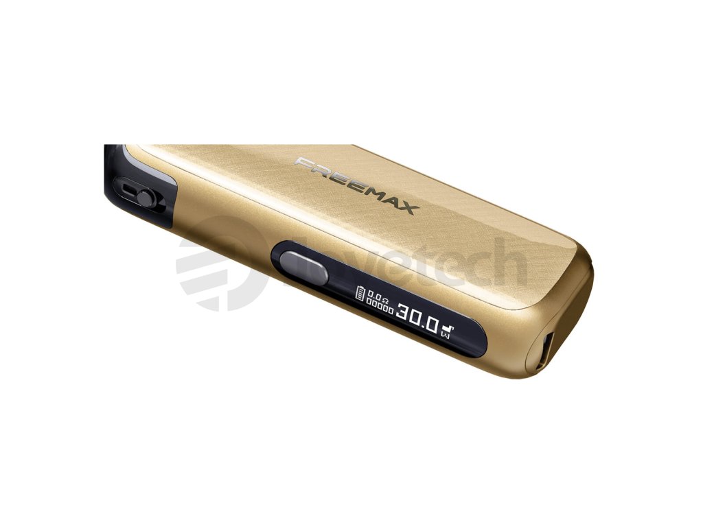 Šarmantní kovové tělo je osazeno integrovanou baterií o kapacitě 2000 mAh. Tato obrovská kapacita zaručuje nerušený a intenzivní vaping s minimem starostí o opětovné nabití. U běžných vaperů si hravě poradí s celodenním vapingem. Další obrovskou výhodou je potom podpora rychlého USB-C nabíjení s podporou dobíjecích parametrů 5V / 2A. Špičkově vybavený pod systém Freemax Elix uspokojí i ty nejnáročnější vapery.