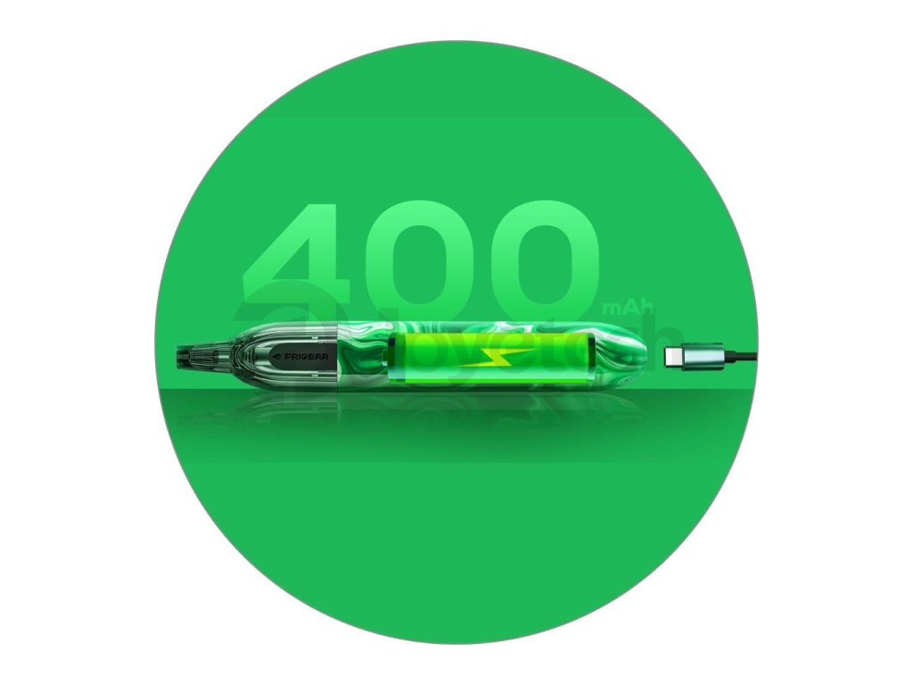 Uvnitř těla na vás čeká integrovaná baterie s příjemnou kapacitou 400mAh pro dlouhé hodiny nerušeného potahování. Výhodou zařízení Friobar Nano V2 je potom přítomnost moderního rozhraní USB-C pro snadné a rychlé dobití baterie naprosto kdekoliv. Přináší tak podstatnou výhodu proti běžným jednorázovým e-cigaretám.