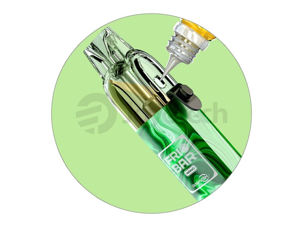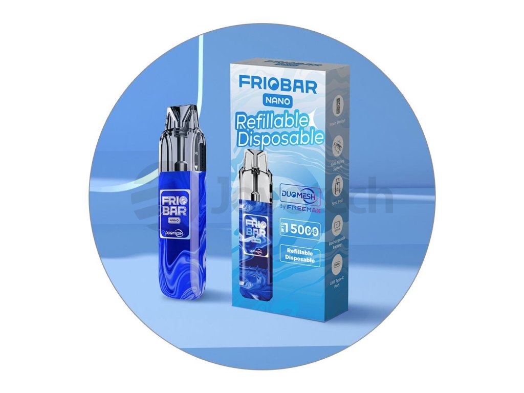 Elektronická cigareta Friobar Nano V2 kombinuje výhody jednorázových a plnitelných e-cigaret. Funguje na principu jednorázové e-cigarety, kdy je celá konstrukce napevno nainstalována a jednotlivé části nelze měnit. Přináší však výhodu v podobě možnosti opětovného dobíjení a opětovného doplňování. Díky prvotřídní integrované žhavící hlavě Duomesh se můžete těšit na dlouhou životnost, zařízení si dokáže poradit s až 10 opětovnými doplněními v případě běžných náplní nebo s pěti opětovnými naplněními v případě salt nikotinových náplní.