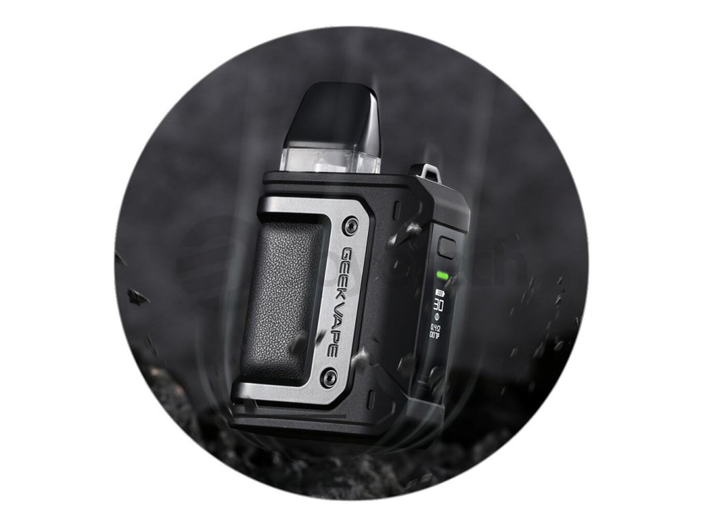 Odlehčenější sourozenec modelu Aegis Hero s označením GeekVape Aegis HERO Q přináší snazší funkce pro ještě komfortnější užívání a kompaktnější konstrukci s podporou oblíbených cartridgí Q Pod Series. Zařízení vhodné pro začínající a nenáročné uživatele se pyšní integrovanou baterií s kapacitou 1300mAh, dvěma metodami spínání potahu a funkcí inteligentní detekce odporu, která automaticky nastaví vhodný výkon podle odporu cartridge. Žádné složitosti, e-cigaretu Aegis HERO Q si jednoduše naplníte e-liquidem, zapnete a můžete se pustit do vapování.