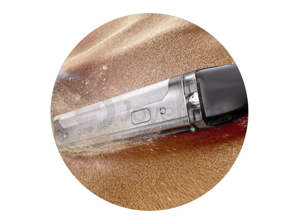 GeekVape AQ Pod Kit je dalším, bohatě vybaveným pod systémem renomovaného výrobce GeekVape. Na scénu přichází v krásně zpracovaném kovovém těle s technologií zvýšené odolnosti Tri-proof a s nabušenými funkcemi pro každodenní využití. Celé tělo nabídne bytelnou kovovou konstrukci z hliníkové slitiny, která nabídne nízkou hmotnost a vyšší odolnost. Tělo je odolné vůči vodě, prachu a nárazu. Celková hmotnost e-cigarety je jen 49,4 g. V jádru zařízení se nachází integrovaná baterie se solidní kapacitou 1000 mAh pro dlouhé hodiny nerušeného vapování. Baterii budete moci dobíjet pomocí portu USB-C na těle. V boční části se potom nachází praktická manuální regulace airflow pro nastavení optimální tuhosti během potahování.