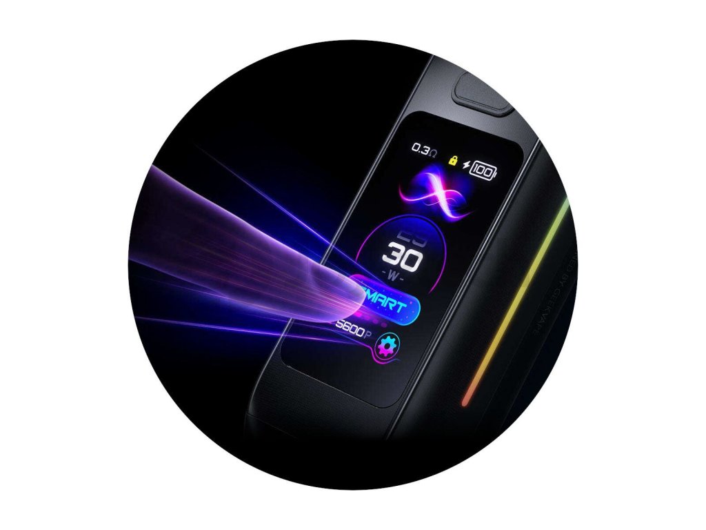 Nepřehlédnutelnou dominantou e-cigarety je obrovský multibarevný displej o úhlopříčce 1.47 palce. Jeho jemné rozlišení a živé barvy jsou opravdovou pastvou pro vaše oči. Displej poskytuje přehledné informace o aktuálním výkonu, zvoleném režimu, odporu cartridge, počtu potahů nebo stavu baterie a veškeré nastavení lze pohodlně a intuitivně ovládat dotykem.