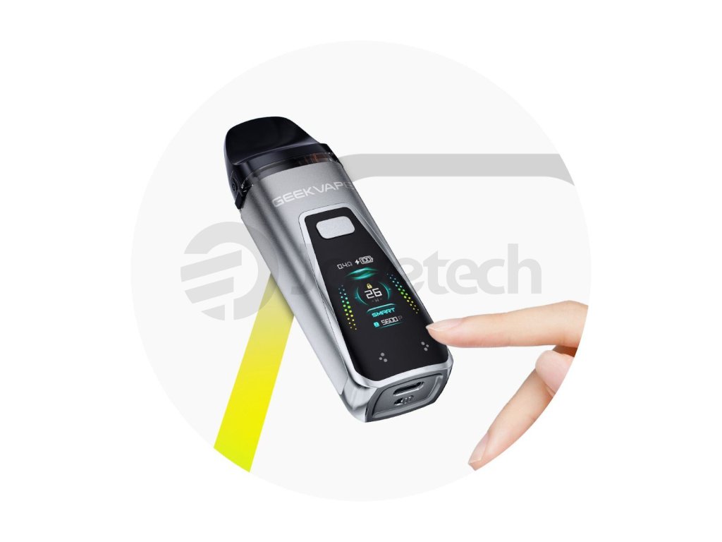 Nepřehlédnutelnou dominantou e-cigarety je multibarevný displej o úhlopříčce 0.96 palce. Jeho jemné rozlišení a živé barvy jsou opravdovou pastvou pro vaše oči. Displej poskytuje přehledné informace o aktuálním výkonu, zvoleném režimu, odporu cartridge, počtu potahů a stavu baterie. Každá změna nastavení pomocí dotykových tlačítek je navíc doprovázena povedenými animacemi, které dozajista udělají dojem i na vaše okolí.