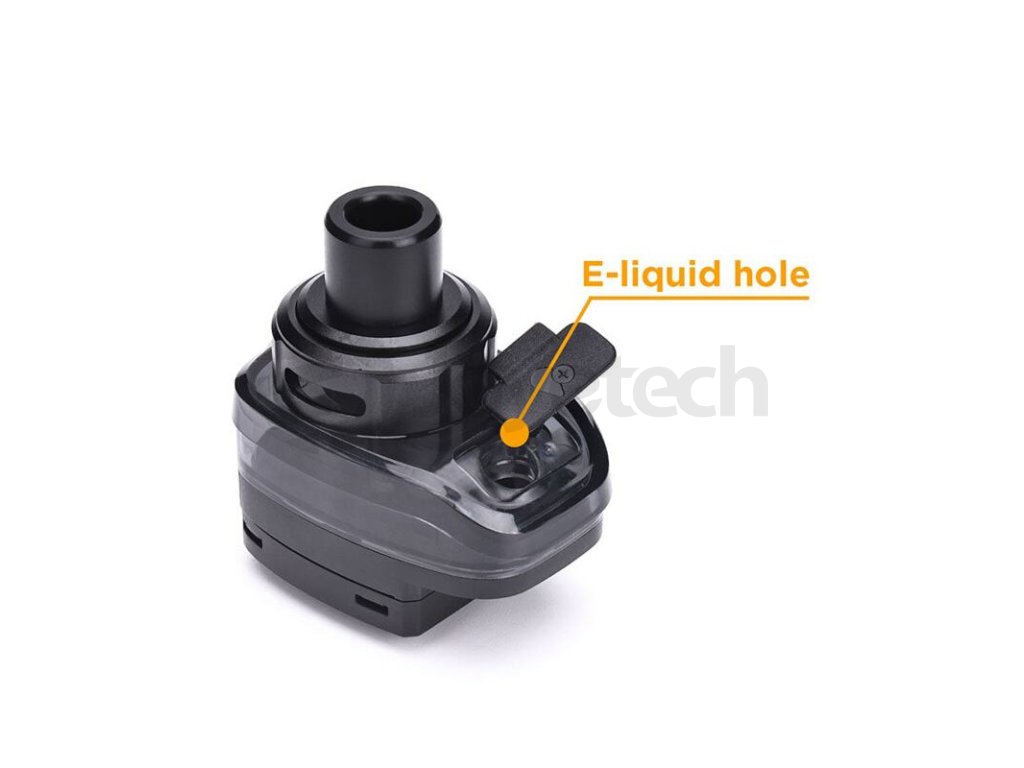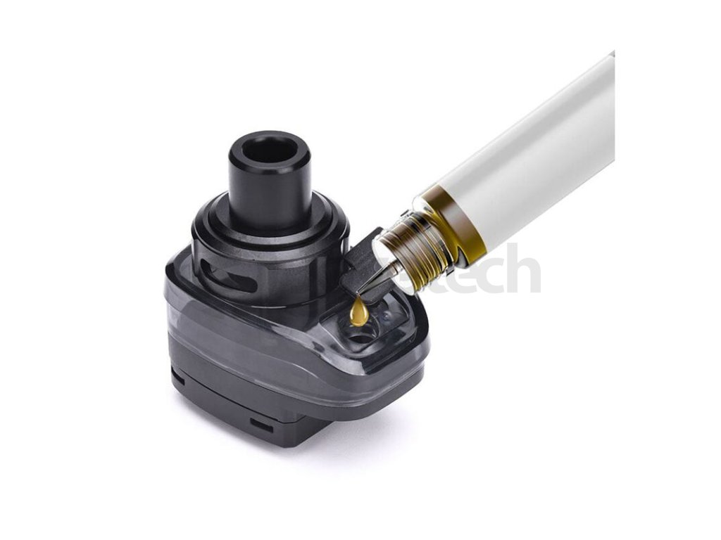 Cartridge ve vrchní části disponuje obrovským objemem 4,5 ml. Nabídne také precizně navržené airflow, které je umístěné ve vrchní části u náustku a umožňuje regulaci. Pečlivě navržená konstrukce celé cartridge potom eliminuje častý vznik nadbytečného kondenzátu během používání a dodá vždy naprosto optimální množství produkované páry. E-liquid do cartridge si vždy doplníte pohodlně přímo ve vrchní části, kde se nachází záslepka plnícího otvoru.