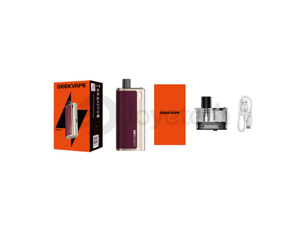 GeekVape Peak 2 Pod Kit je krásně a umělecky zpracovaná e-cigareta. Výrobce kladl maximální důraz na originální zpracování, perfektní ergonomii a unikátní styl, který se hodí jak do společnosti, tak také pro každodenní běžné využívání. S rozměry 95.6 x 38.6 x 18.5 mm perfektně padne do kapsy a díky ploché konstrukci se příjemně drží v dlani. Model se představuje hned v pěti originálních barvách.