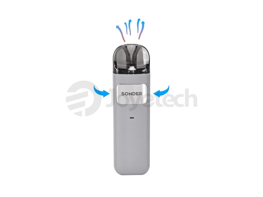 Elegantní startovací model pro klasické šlukování s názvem GeekVape Sonder U Pod Kit se zaměřuje zejména na začátečníky a nenáročné uživatele, kteří hledají praktickou e-cigaretu do kapsy. Jedná se o kompaktní model s délkou jen 95,8 mm a šířkou 26,6 mm. Díky ergonomicky zpracovanému tělu se příjemně drží v dlani a nemá tendenci vykluzovat. Přední panel potom zdobí stylový štít s logem produktu. Uvnitř kompaktního těla e-cigarety Sonder U na vás potom čeká integrovaná baterie s obrovskou kapacitou 1000 mAh pro dlouhou výdrž a intenzivní vapování. Tělo nedisponuje jakýmkoliv tlačítkem, veškeré parametry, hodnoty a nastavení si e-cigareta upravuje zcela automaticky, odpadá vám tak starost o jakékoliv složité nastavování. Jen ji naplníte e-liquidem, vyčkáte pár minut a můžete začít potahovat. Žhavení se rovněž spouští zcela automaticky.