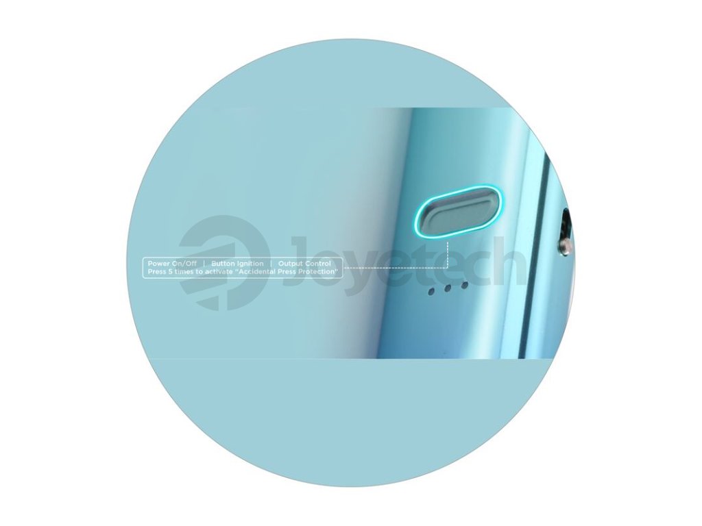 Přímo pod spínacím tlačítkem se nachází tři indikační diody, které slouží pro snadné a rychlé ověření stavu baterie, nebo pro zobrazení možných problémů při vapování. Stav baterie je indikován pomocí tří různých barev, přičemž plně nabitá baterie svítí zeleně, středně nabitá potom modře a téměř vybitá baterie se hlásí červenými diodami. Díky této přehledné indikaci vám již nic neunikne.