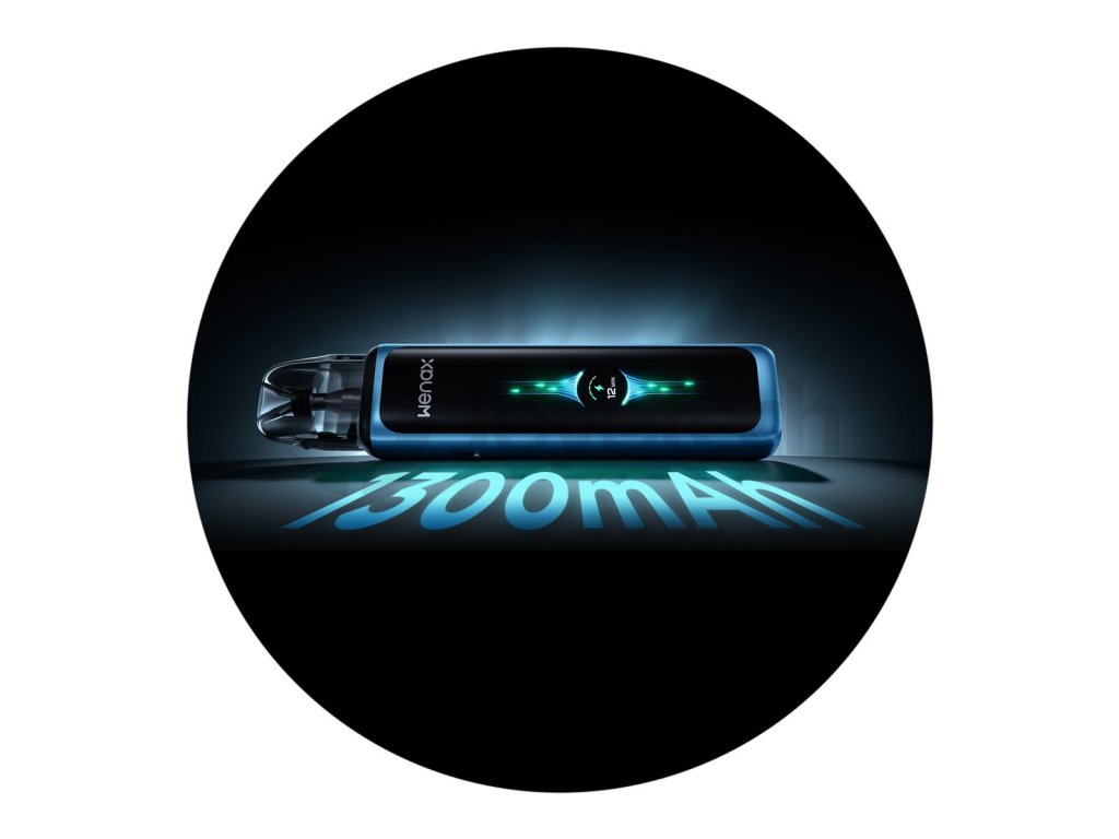 Wenax Q Ultra používá výkonnou baterii o kapacitě 1300 mAh, což je nejvyšší hodnota z celé rodiny e-cigaret Wenax. Tato velkorysá kapacita by měla běžnému uživateli postačit na mnoho hodin vapování. K dobíjení slouží standardní USB-C port nacházející se na spodní straně zařízení. Nezapomnělo se ani na podporu rychlého 2A nabíjení, které vám umožní e-cigaretu v případě nutnosti znovu pohotově dobít do plné kapacity.