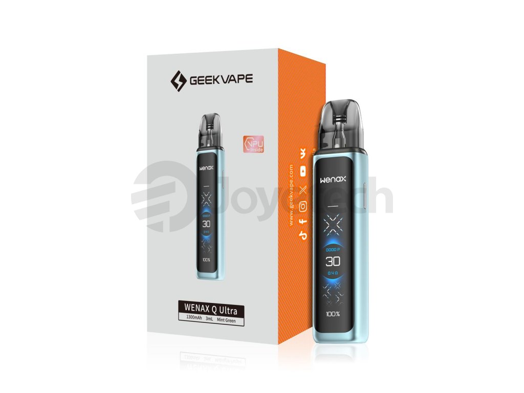 Poutavější, rychlejší, zábavnější. Těmito slovy by se dala charakterizovat novinka od značky GeekVape - pod systém Wenax Q Ultra. Na první pohled jednoznačně upoutá obří displej, jehož kompletně nové uživatelské rozhraní s bleskovou odezvou a podporou dotykových gest je radost používat. 1300mAh baterie zaručuje mnoho hodin vapování. S nastavitelným výkonem až 30 wattů a posuvníkem Airflow dosáhnete skutečně maximální kontroly nad vaším požitkem z vapování. Dále vás jistě potěší i široká škála dostupných odporů pro MTL a RDL vaping. Mimořádná všestrannost činí z Wenax Q Ultra ideální volbu pro široké spektrum vaperů.
