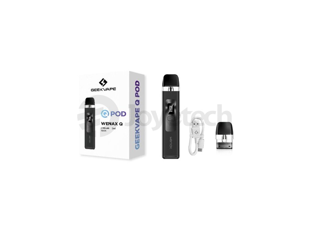 Druhý model ze série Q od renomovaného výrobce GeekVape dostal název Wenax Q Pod Kit. Jedná se o stylový a elegantní pod systém s pokročilejšími funkcemi, které umožní širší variabilitu v nastavení potahu, zařízení tak uživatelům nabídne větší svobodu jak v samotné regulaci výstupního výkonu, tak také v nastavení tuhosti potahování. GeekVape Wenax Q Pod Kit přichází v krásně zpracovaném těle z lehoučké hliníkové slitiny s celkovými rozměry 108,91 x 23,8 x 13,8 mm. Těšit se můžete na populární design tradičních pod systémů se zaoblenými hranami pro co nejkomfortnější užívání a pohodlné držení v dlani. Tělo zařízení je poháněno integrovanou baterií s velkou kapacitou 1000 mAh, která si hravě poradí také s intenzivnějším mnohahodinovým vapingem, baterie se navíc postará o hladký chod a stabilní výkon zařízení. V případě potřeby ji můžete kdykoliv dobít pomocí portu USB-C.
