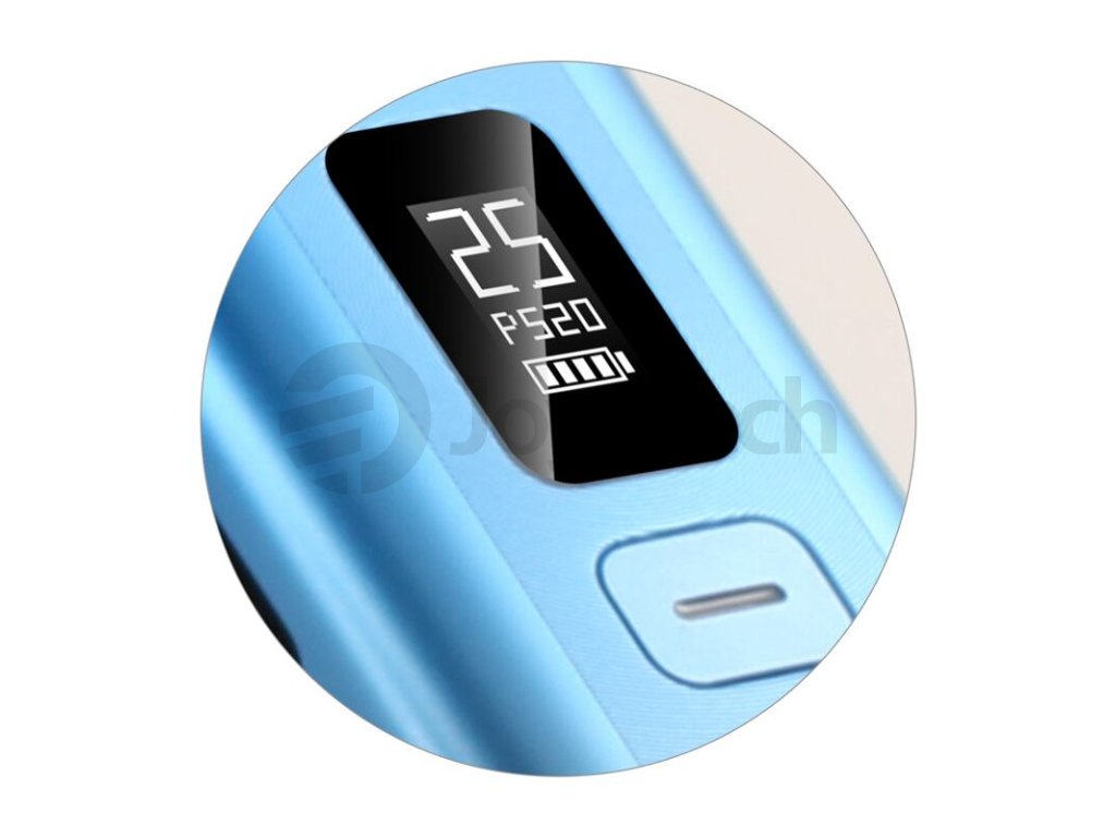 V přední části se nachází přehledný displej a velké spínací tlačítko, které plní celou řadu úloh. Pomocí tlačítka můžete zařízení pohodlně zapnout a vypnout, nebo ho použít pro sepnutí samotného žhavení. Na displeji budete mít neustálý přehled o aktuálním stavu baterie, o počtu potahů a o nastaveném výkonu zařízení, žádná informace vám neunikne.
