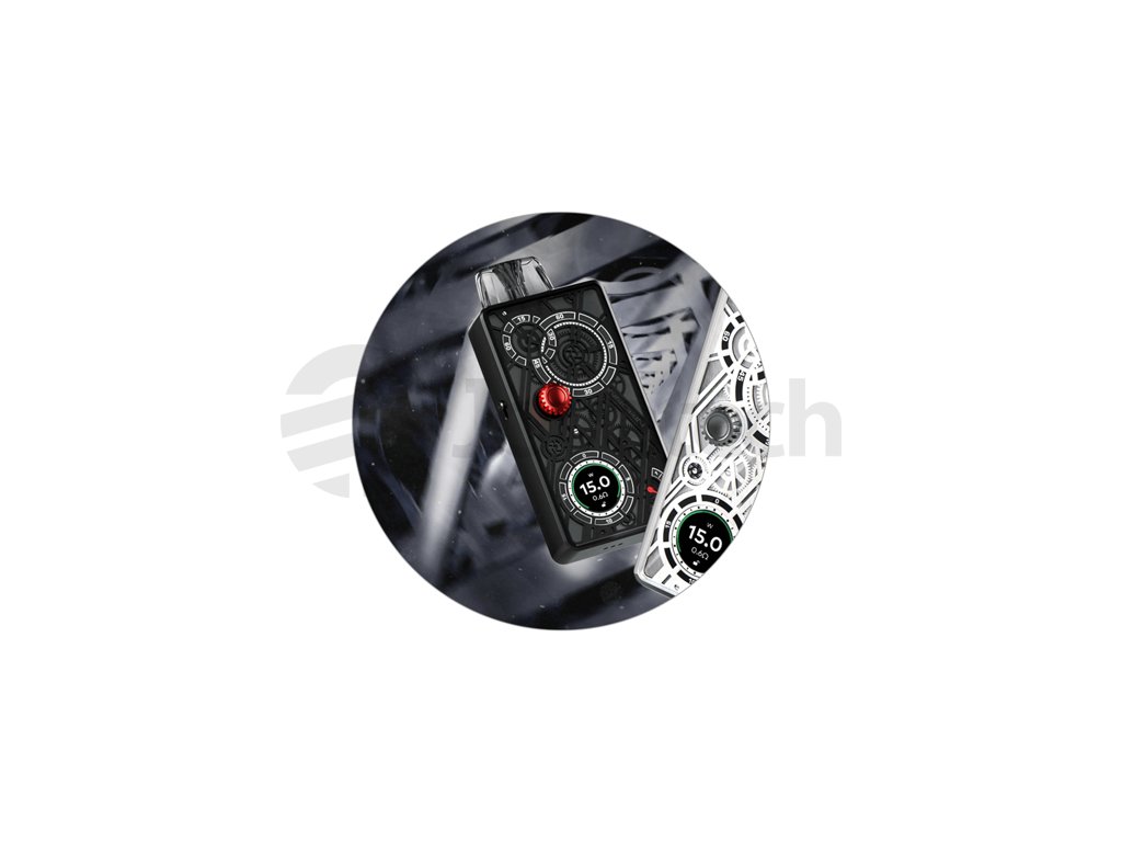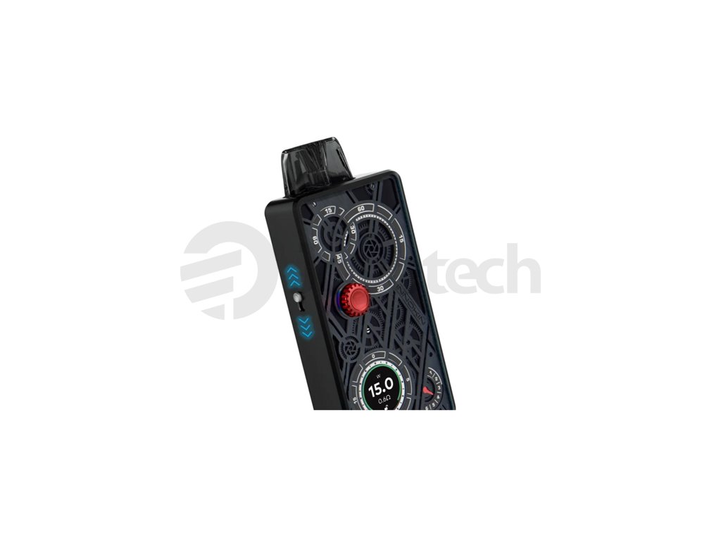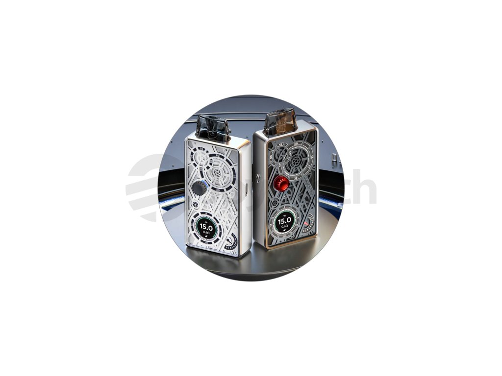 Innokin Klypse Mecha Pod Kit šlape jako hodinky. Pod systém zkonstruovaný z prémiové zinkové slitiny s promyšleným designem inspirovaným strojkem v tradičních mechanických hodinkách je ukázkou mistrovské zručnosti designérů ze společnosti Innokin. S přehledným uživatelským rozhraním a intuitivním ovládáním pomocí otočného kolečka se nebudete ani na vteřinu nudit a díky velké kapacitě baterie a podpoře cartridgí Klypse se můžete těšit na nekonečné hodiny příjemného vapování.