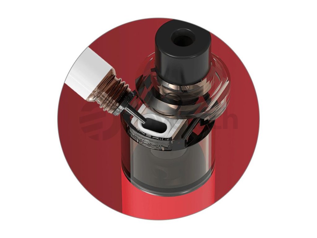 Ve vrchní části se nachází stylová cartridge, do které je nasazeno vyměnitelné žhavící tělísko Innokin S Coil. Odpor tohoto tělíska činí 0,5 ohm. Jedná se o příjemný kompromis pro všechny milovníky MTL potahování. Ve vrchní části cartridge se nachází náustek s uchycením typu 510, který si budete moci snadno nahradit svým vlastním náustkem se stejným typem uchycení.