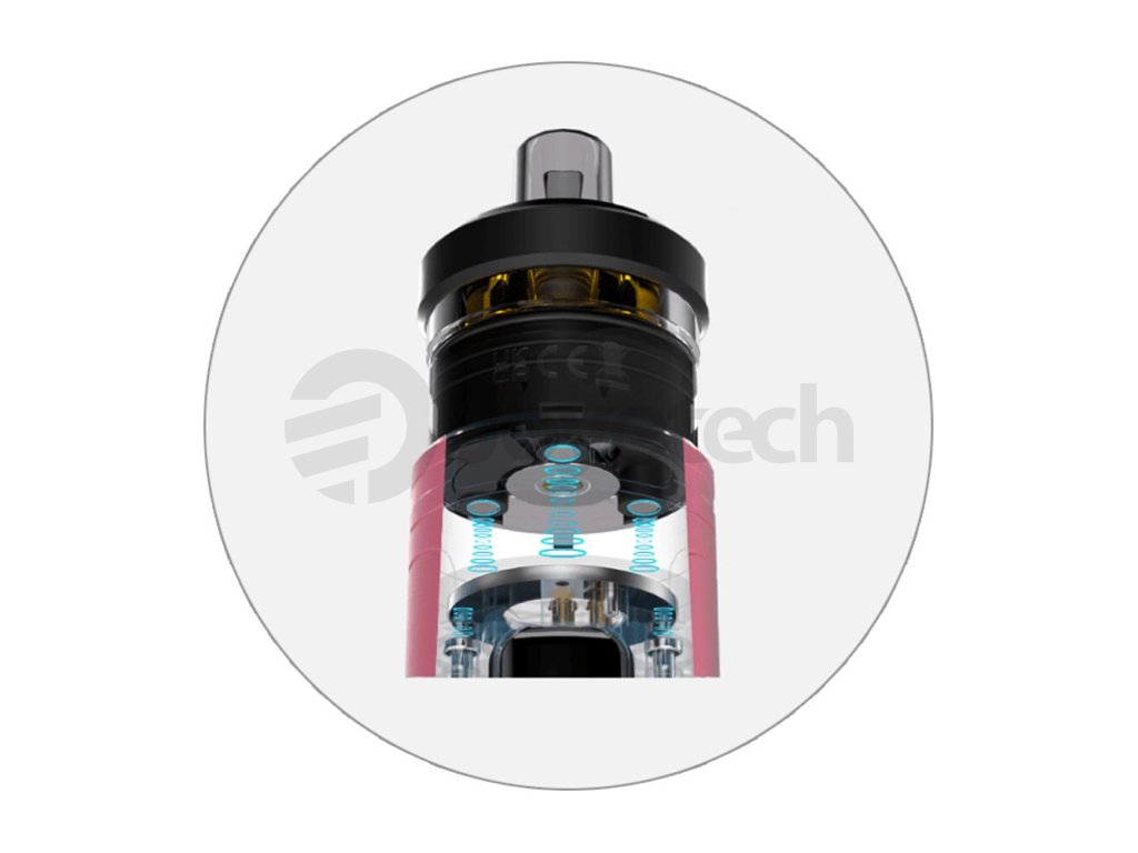 Potřebujete si vyladit tuhost potahu? Žádný problém. Innokin ZYON nabídne moderní a praktický systém regulace vzduchu. Pro nastavení optimální tuhosti potahu postačí otáčet cartridgí na těle, v zadní části poté můžete sledovat, na kolik máte otvor otevřený, nebo uzavřený. Vše si vyladíte doslova během pár vteřin.