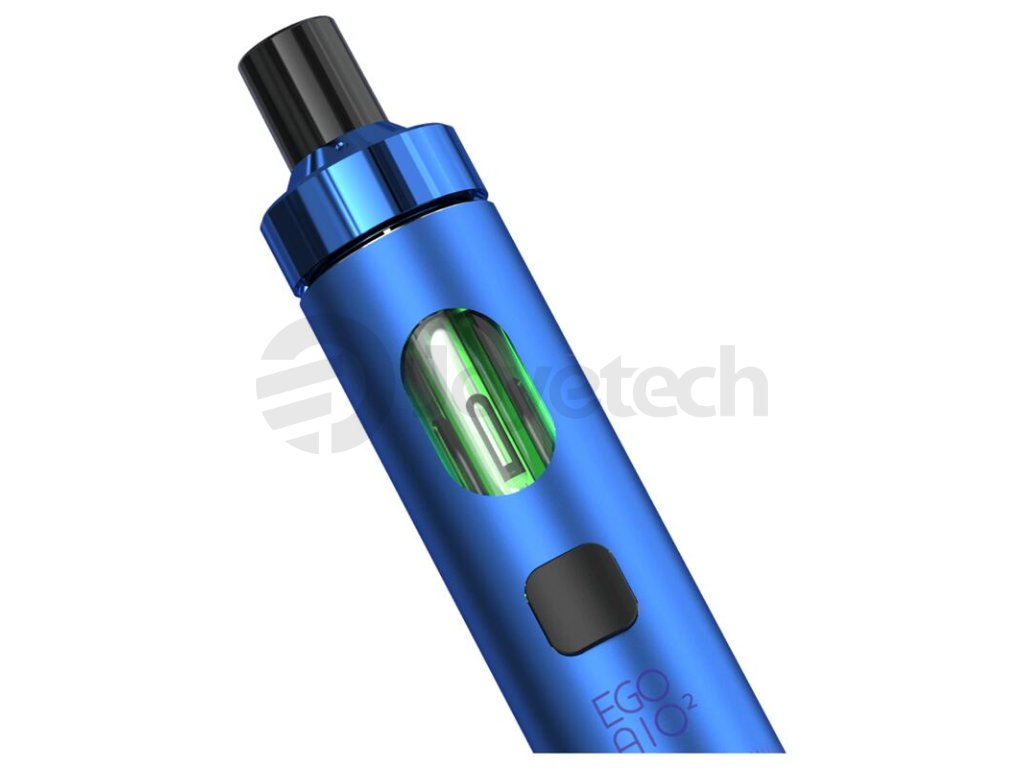 Dlouhodobě jeden z nejpopulárnějších modelů elektronických cigaret se představuje v nové podobě. Joyetech eGo AIO2 Kit nabídne všechny oblíbené prvky milovníků elektronických cigaret eGo AIO, přináší však moderní vylepšení pro ještě komfortnější užívání a kvalitnější požitek z vapingu. Esteticky vybroušený design celé konstrukce dokáže zaujmout jakéhokoliv vapera, tělo přichází ve čtyřech barevných variantách s délkou 123 mm a průměrem 19 mm. Přední část zdobí čtvercové ovládací tlačítko pro zapnutí, vypnutí a sepnutí žhavení. V těle se nachází integrovaná baterie s obrovskou kapacitou 1700 mAh, která si poradí s intenzivním provozem a efektivně rychlým náběhem žhavení. Stav baterie je možné sledovat pomocí multibarevné indikační LED diody, která informuje o aktuálním stavu baterie jednou ze sedmi barev.