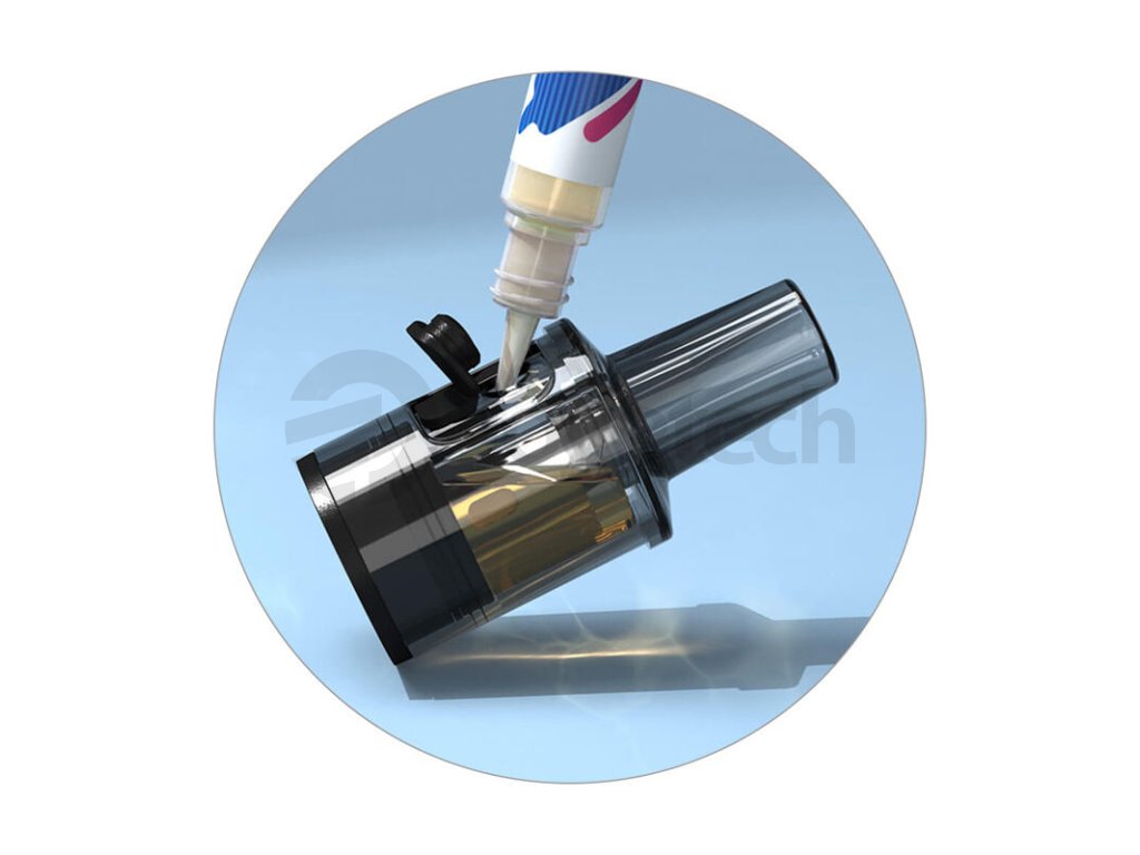 Cartridge AST disponují praktickým systémem bočního plnění. V boční části se nachází silikonová záslepka, po jejímž odejmutí můžete začít plnit. Do plné kapacity 2 ml doplníte během pár vteřin. Poté se můžete opět začít věnovat potahování.