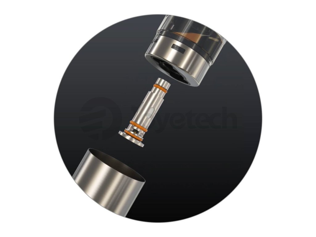 Systém proudění vzduchu je u modelu eGo NexO umístěn do horní části. Otáčením regulačního kroužku si snadno a rychle přizpůsobíte výslednou tuhost potahu svým představám. Zařízení si tak hravě poradí s metodami potahování MTL a RDL a zároveň zamezuje nechtěnému úniku e-liquidu.