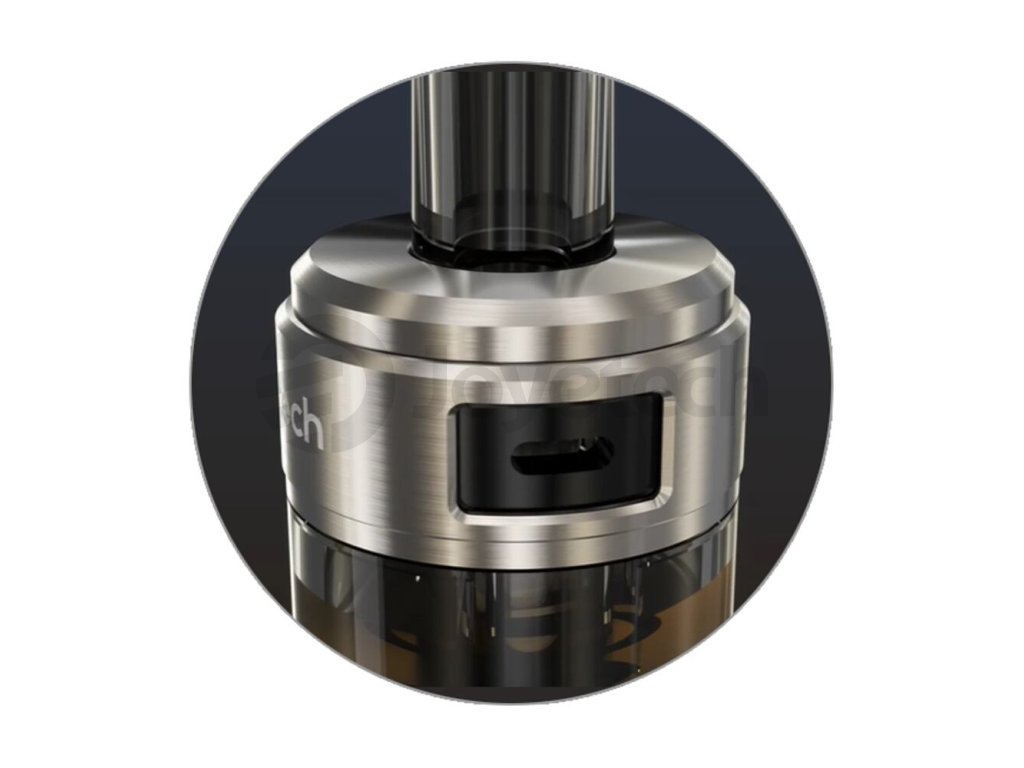 Cartridge ve vrchní části nabídne základní objem 2ml, vystačí si tak na mnohahodinové potahování. V případě potřeby pak stačí jednoduše odklopit záslepku v horní části e-cigarety a kdykoliv si opětovně e-liquid doplnit. Vše zvládnete naprosto čistě a rychle během pár vteřin. Pro plnění navíc nemusíte ani odpojovat cartridge od těla baterie, můžete proto hravě plnit sestavenou e-cigaretu v provozu.