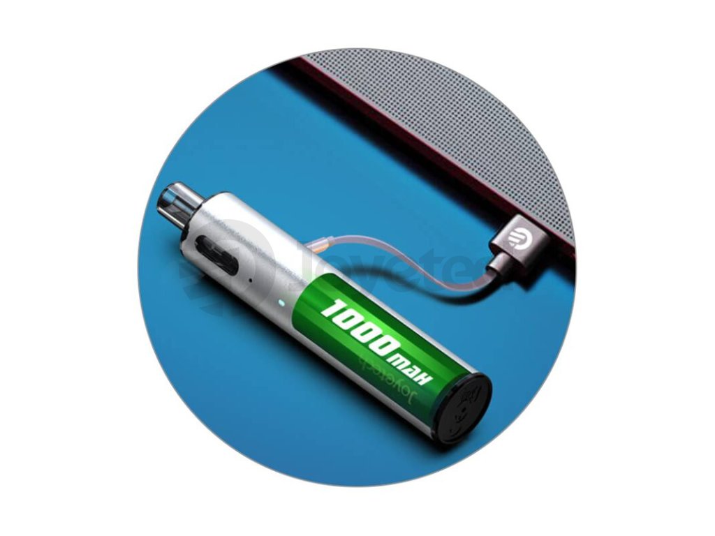 Uvnitř těla se nachází integrovaná baterie s obrovskou kapacitou 1000 mAh. Ta si poradí s mnohahodinovou výdrží a u slabších vaperů s vapováním po celý den. Samozřejmostí je přítomnost celé řady bezpečnostních ochran baterie. V případě potřeby dobití pak jednoduše připojíte microUSB kabel z balení a baterii kdykoliv dobijete.