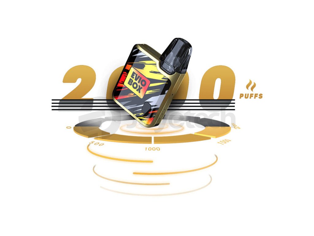 Joyetech EVIO Box Pod Kit je novým přírůstkem do rodiny zařízení EVIO od výrobce Joyetech. Přichází s kompaktním zpracováním, hned dvěma odlišnými konstrukcemi a řadou výhod v čele s prvotřídním čipem s technologií AST. Nesmí chybět také vynikající podání chuti, nebo třeba dvě metody spínání potahu. Joyetech EVIO Box Pod Kit v sobě ukrývá mnohem víc, než se může na první pohled zdát. Celé tělo disponuje rozměry jen 75 x 49 x 14 mm. E-cigaretu proto snadno schováte do kapsy a můžete si ji vzít kamkoliv s sebou. K dispozici je ve verzi ze zinkové slitiny s hmotností 80 g, nebo ve verzi z polykarbonátu s váhou pouhých 41,5 g. Uvnitř těla se nachází integrovaná baterie s kapacitou 1000 mAh, která se postará při běžném provozu až o celodenní výdrž. V případě potřeby je pak možné baterii rychle dobít. Při dobíjení proudem 2 A se zvládne dobít již za 30 minut.