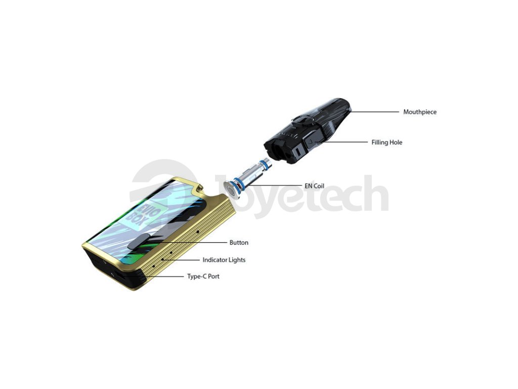Uvnitř těla najdete mimo baterii také prvotřídní čip s technologií AST pro bleskurychlý náběh žhavení 0,001 vteřiny, dlouhou životnost baterie, nebo pro změnu výstupního režimu. K dispozici jsou hned tři režimy intenzity žhavení. Nesmí chybět ani podpora obou typů potahování. Pro spuštění žhavení tak můžete využít tlačítko na těle e-cigarety, nebo můžete využít automatické spínání pouhým přiložením úst k náustku a potáhnutím. Samozřejmostí je potom automatická detekce připojeného tělíska a řada bezpečnostních prvků. E-cigareta je kompatibilní s tělísky Joyetech EN, v balení se nachází tělísko s odporem 0,8 ohm pro vzdušnější MTL a tělísko s odporem 1,2 ohm pro utaženější šlukování. Joyetech EVIO Box Pod Kit je povedený pod systém, který by neměl chybět ve sbírce žádného milovníka kompaktních e-cigaret pro klasické šlukování.