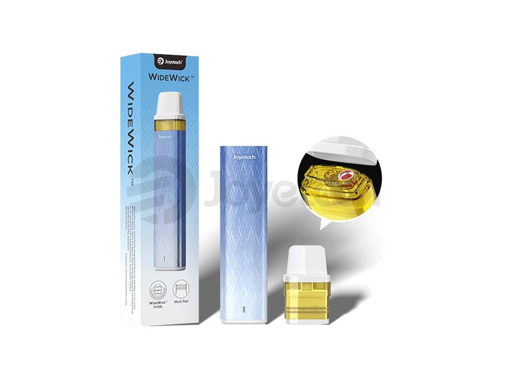 Nespornou výhodou modelu Joyetech WideWick Pod Kit je přítomnost cartridge s objemem 2 ml a odporem 1,2 ohm s technologií WideWickTM. Díky této technologii je e-liquid uzamykán uvnitř vaty, přičemž se absorbuje po celém objemu vaty okolo mesh spirálky uvnitř. Každý potah je tak příjemně výrazný, plný a chutný, mesh pletivo rovnoměrně odpařuje e-liquid po celé délce, aby byl každý potah doslova dokonalý.