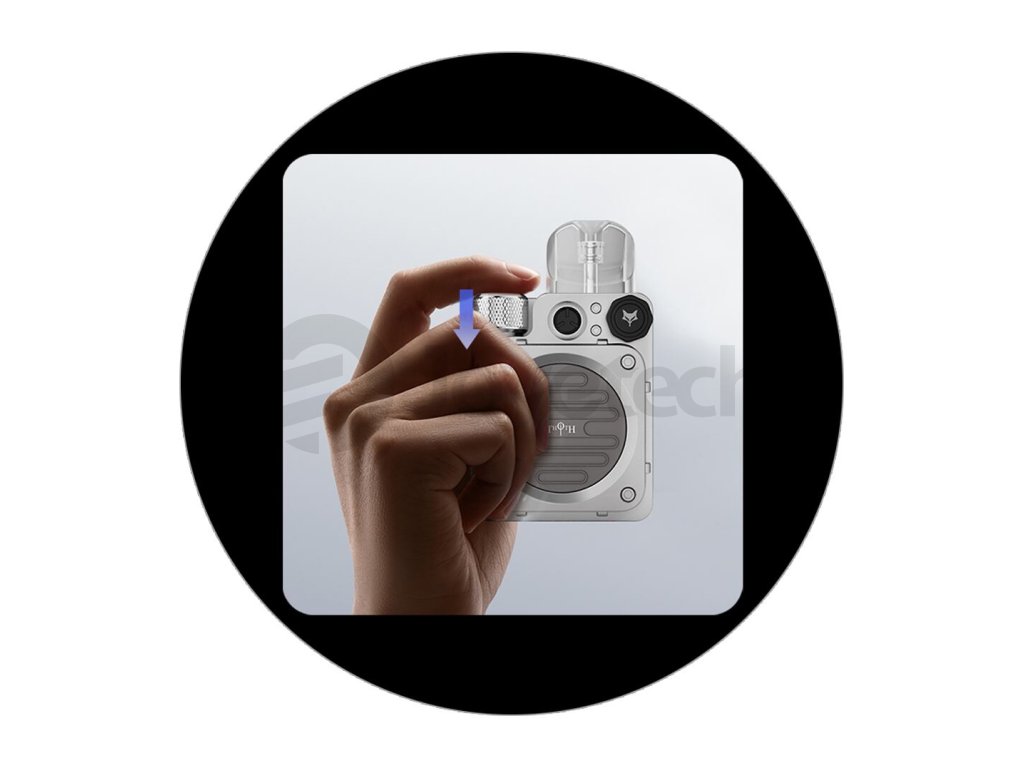 Pro spínání samotného žhavení můžete využít jednu ze dvou dostupných metod. Pokud preferujete konvenční spínání, stačí podržet spínací tlačítko ve vrchní části a začít potahovat. Jestliže však preferujete jednoduchost moderních pod systémů, pro spuštění žhavení vám také postačí jen potáhnout z náustku, žhavení se spustí automaticky bez nutnosti tisknout tlačítko.