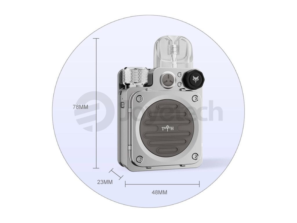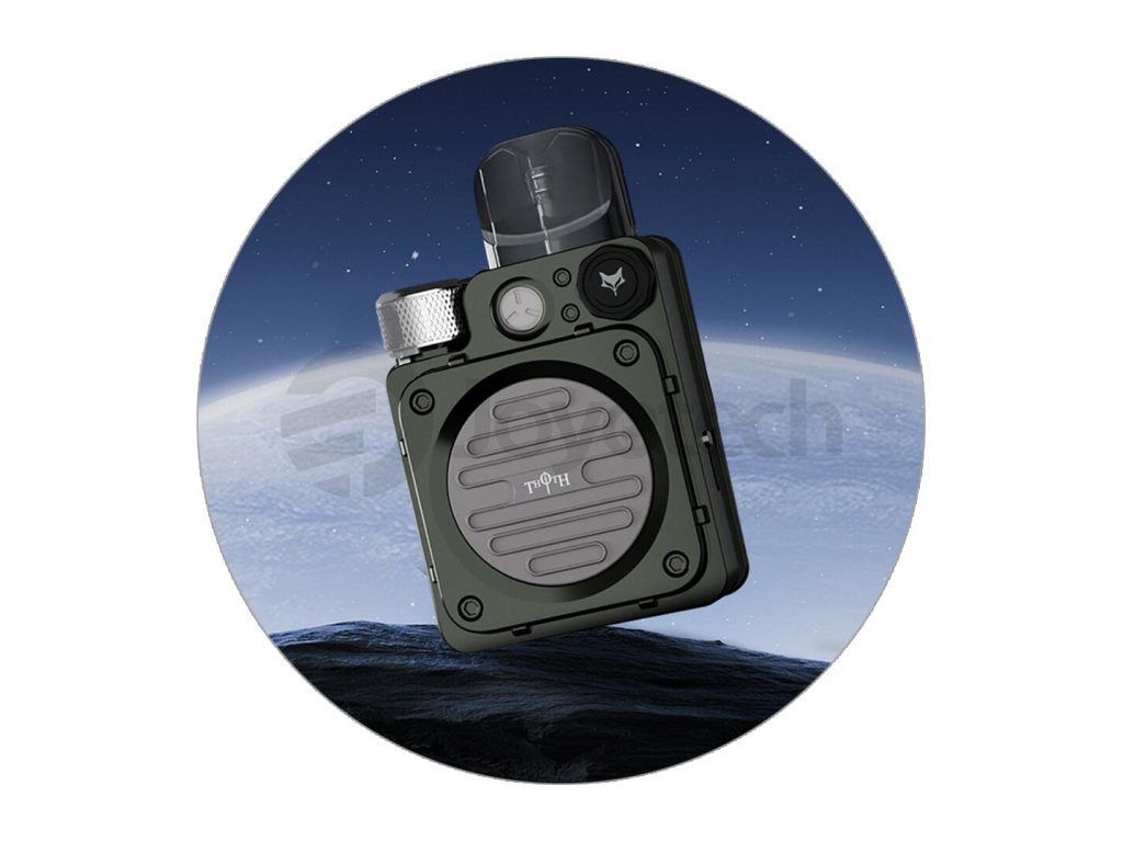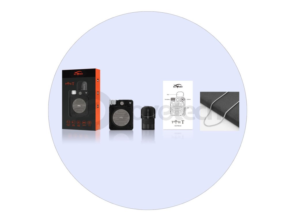 Kumiho THOTH T Pod Kit přináší elegantní spojení netradičního designu a kvalitního pod systému s maximálním důrazem na výraznou chuť e-liquidu. Tělo zařízení připomíná kompaktní retro rádio, celokovová konstrukce je potom nesmírně bytelná a příjemně se drží. Nechte se ohromit integrovanou baterií s kapacitou 1300 mAh a režimem konstantního výstupního napětí pro co nejlepší výsledky při vapování. Poznejte mimořádné chuťové podání díky podpoře platformy náhradních cartridgí Kumiho THOTH a zažijte zcela jedinečný a neopakovatelný zážitek z vapingu.