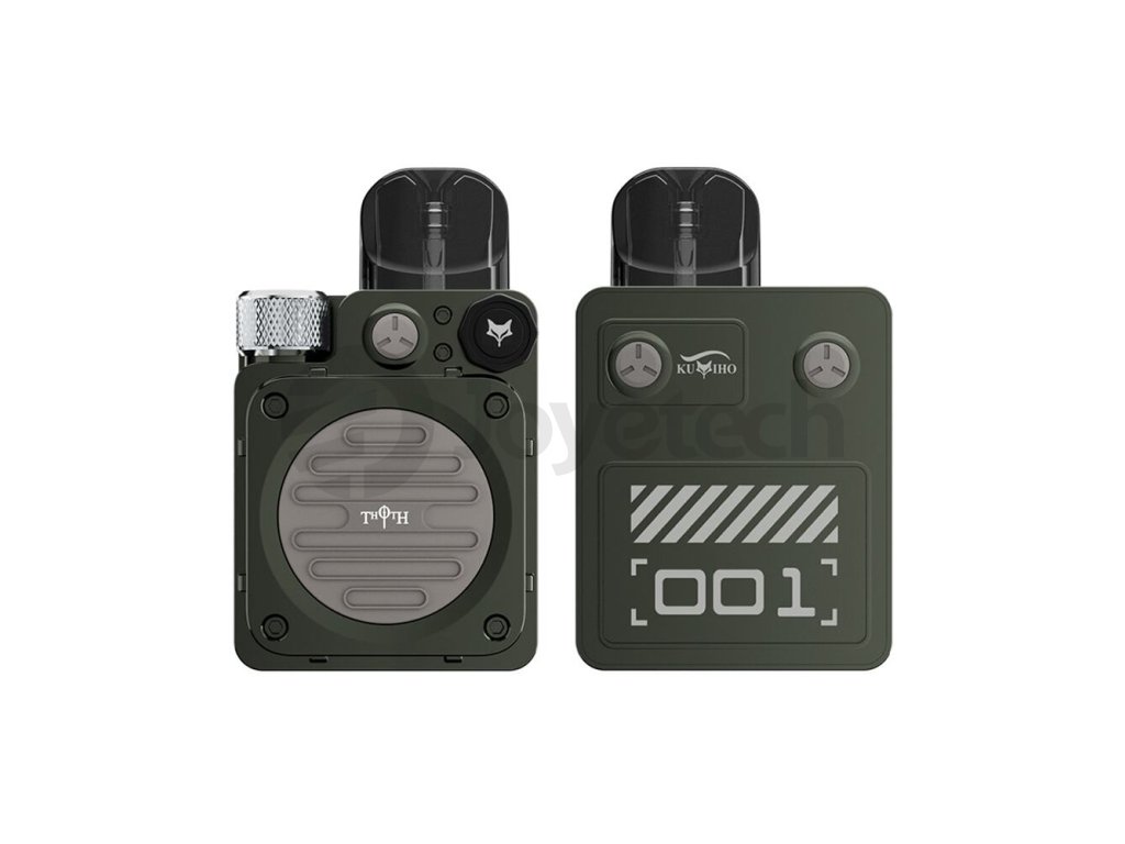 Kumiho THOTH T Pod Kit přináší elegantní spojení netradičního designu a kvalitního pod systému s maximálním důrazem na výraznou chuť e-liquidu. Tělo zařízení připomíná kompaktní retro rádio, celokovová konstrukce je potom nesmírně bytelná a příjemně se drží. Nechte se ohromit integrovanou baterií s kapacitou 1300 mAh a režimem konstantního výstupního napětí pro co nejlepší výsledky při vapování. Poznejte mimořádné chuťové podání díky podpoře platformy náhradních cartridgí Kumiho THOTH a zažijte zcela jedinečný a neopakovatelný zážitek z vapingu.
