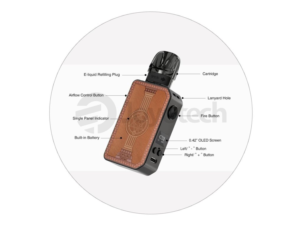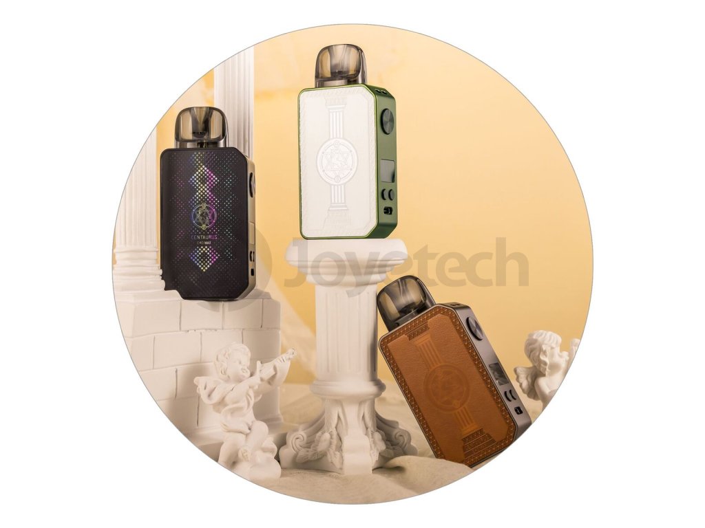 Objevte krásy zařízení Lost Vape Centaurus E40 MAX Pod Kit, ve kterém se snoubí designová elegance architektury starověkého Říma a moderní vapingové technologie. Tělo z hladkého hliníkového rámu doplňuje luxusní kožený přebal, nabídne tak skvělou odolnost ve spojení s nesmírně stylovým zpracováním. Užijte si bohatou a chutnou páru díky strhujícímu regulovatelnému výkonu až 40W a inovativním cartridgím E-Plus Pod. Tělo opatřené bočním panelem s podsvíceným římským sloupem nabídne integrovanou baterii s obrovskou kapacitou 1400mAh pro pohodový a nerušený vaping. Vapujte stylově a zažijte luxusní požitek při každém potahu.
