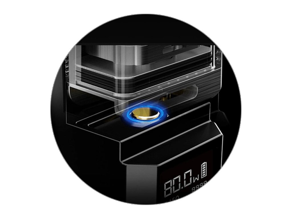 Odklopením zadního panelu modelu G80S objevíte slot pro vložení vlastní externí baterie. E-cigareta pracuje s bateriemi typu 18650, díky čemuž nabídne obrovskou svobodu při výběru vhodného a odpovídajícího článku. Výhodou zařízení je potom nabíjení vaší vlastní baterie přímo v těle zařízení, na těle totiž najdete moderní rozhraní USB-C s dobíjecími hodnotami 5V / 1.85A a s podporou adaptérů až do 2A.