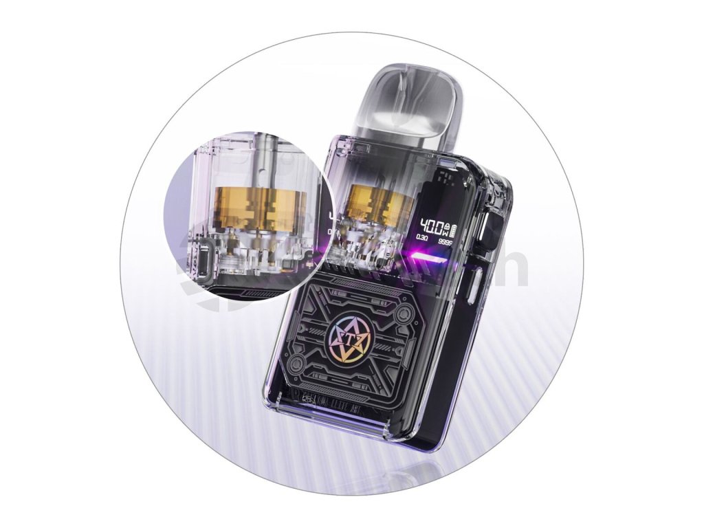 Stylový design zařízení se semi-transparentní konstrukcí činí z modelu Thelema Elite Art 40 opravdový unikát. Tělo je vyrobeno z kombinace zinkové slitiny a plastu s originálně zvolenými motivy a barvami. Poznejte budoucnost vapingu a vapujte s futuristickou e-cigaretou, která se ponese přesně na vlnách vašeho stylu.